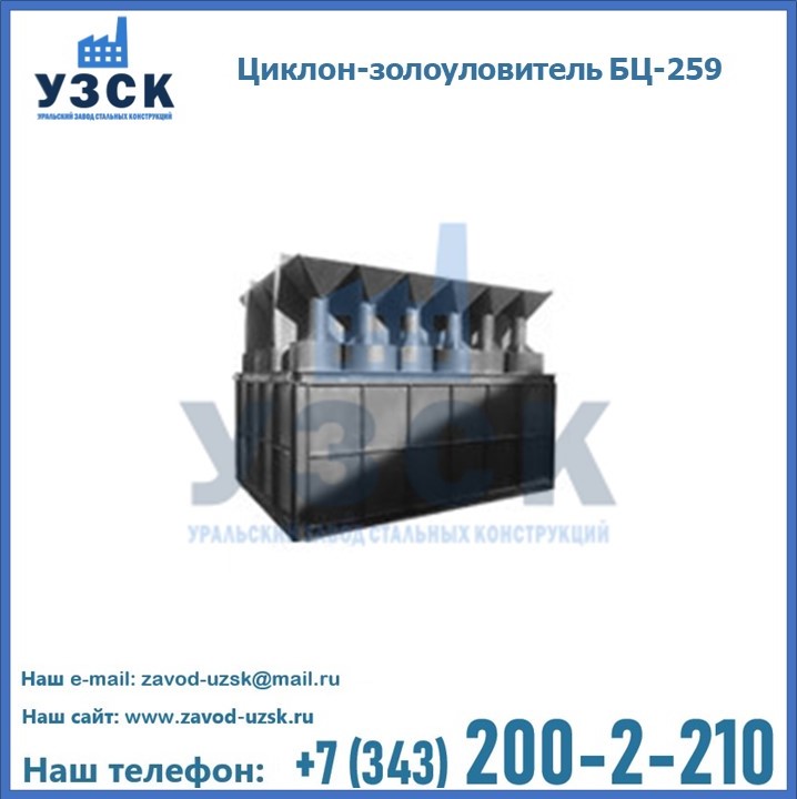 Если вы планируете купить то или иное оборудование, например, циклоны-золоуловители БЦ-259, то рекомендуем заказать данный товар на сайте УЗСК. Мы производим и реализуем продукцию высокого качества по приемлемой цене. Эксперты Уральского Завода Стальных Конструкций в Хасавюрте проконсультируют вас по всем вопросам, помогут сделать выбор и оформить заказ без лишних временных затрат. Мы гарантируем соответствие нашей продукции всем требованиям ГОСТ и ТУ, а также износостойкость и высокую производительность предлагаемого оборудования. Если требуется изготовить циклон нестандартных размеров, то такой вариант выполнения заказа тоже предусмотрен, так как предприятие имеет собственные производственные площади и надежных поставщиков. На все поставляемое или производимое оборудование имеются чертежи и прочая техническая документация. Заказать и купить циклоны или прочее оборудование высокого качества и по доступной цене можно через наш сайт или по указанному в разделе «Контакты» телефону.