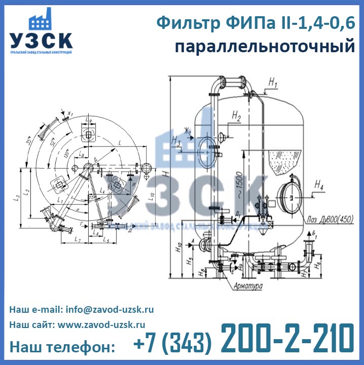 Производитель фильтров ФИПаII 1,4-0,6 – Уральский Завод Стальных Конструкций (УЗСК).